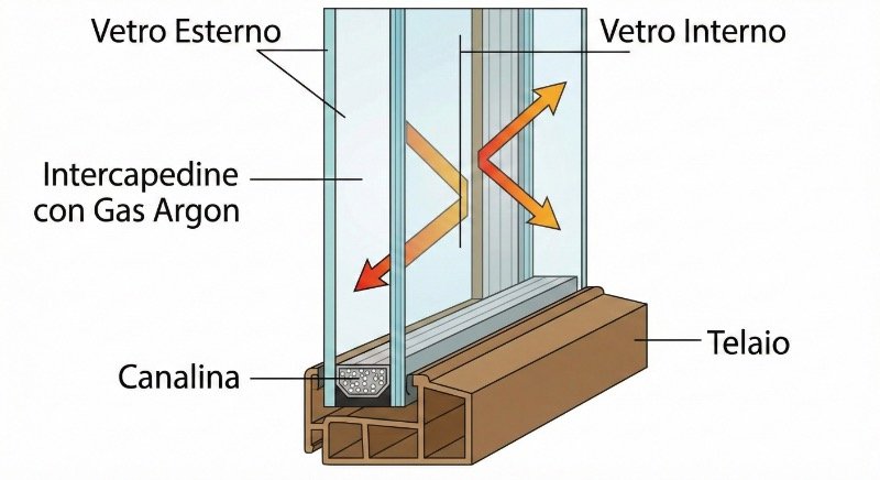 - Gas Argon: È lo standard minimo (riempimento 90%). Diffida di chi ti propone ancora solo aria. Il gas Kripton è troppo costoso e raro, riservato a casi estremi di spessori ridotti.