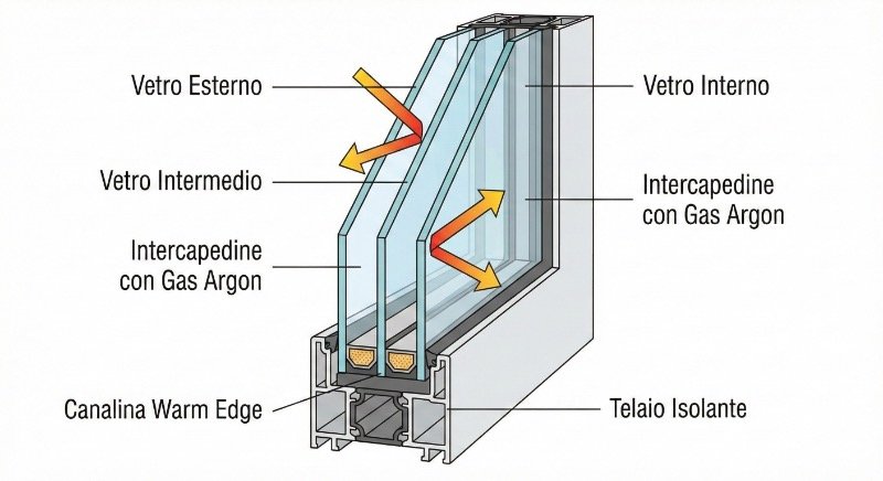 Questa guida tecnica analizza le variabili fisiche, economiche e normative per aiutarti a decidere. Scoprirai perché il mercato spinge il triplo vetro (spoiler: margini di profitto più alti) e quando invece il “vecchio” doppio vetro, se evoluto tecnologicamente, rimane la scelta ingegneristica più razionale per gran parte dell’Italia.