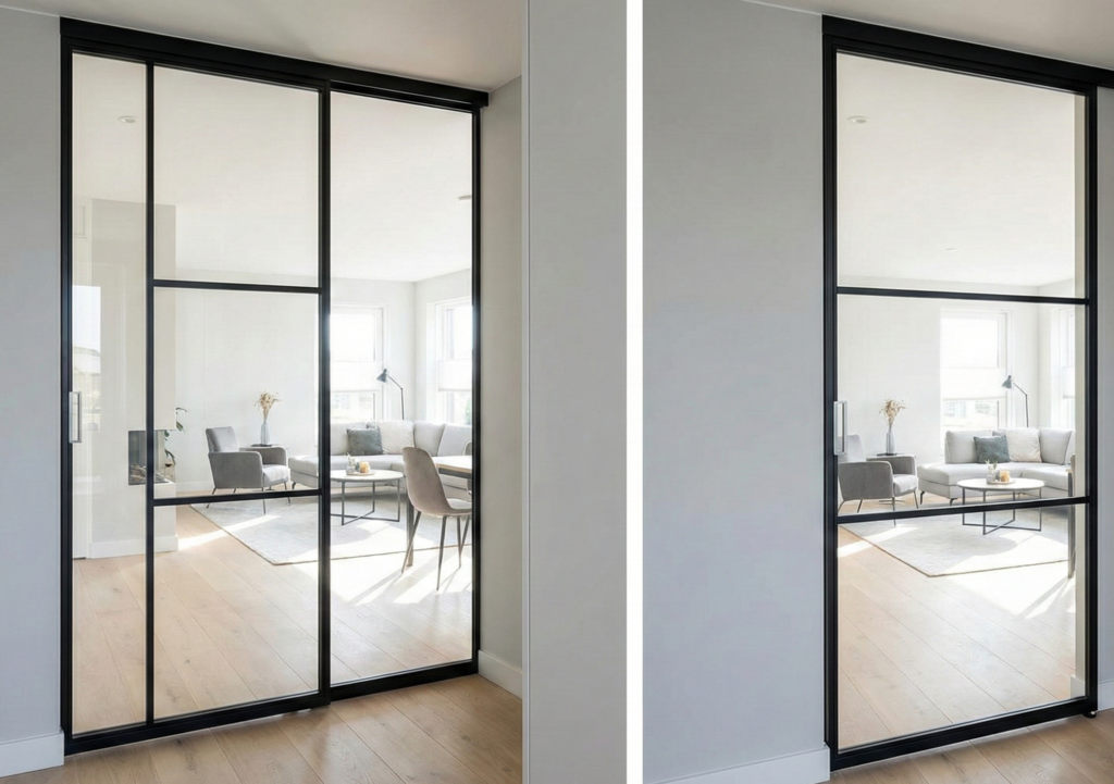 | Soggiorno / Cucina | Condivisione luce naturale, estetica. | Vetro stratificato o fumé con telai sottili in alluminio (sistemi scorrevoli). |